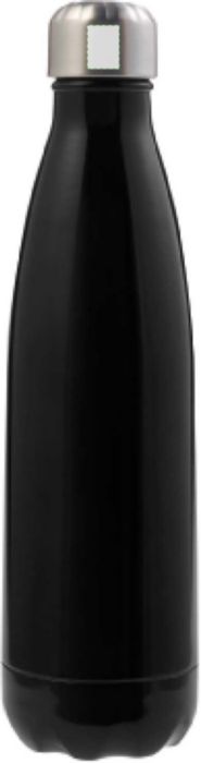 Doppelwandige Trinkflasche 'Lombok' (ca. 500 ml) aus Edelstahl mit silbernem Schraubverschluss. Die Flasche eignet sich für kohlensäurehaltige, Heiß-und Kaltgetränke.